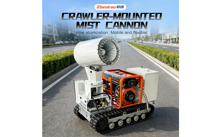 The tracked chassis allows the mist cannon to move smoothly across uneven orchard terrain, including grassy areas, soft soil, and gentle slopes. This mobility enables operators to target high-temperature zones and adjust coverage according to orchard layout, wind direction, and daily temperature changes.